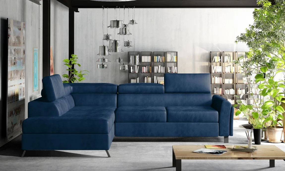 Rohová rozkládací sedačka LAVRANIA 09, levá, modrá látka Sedací soupravy