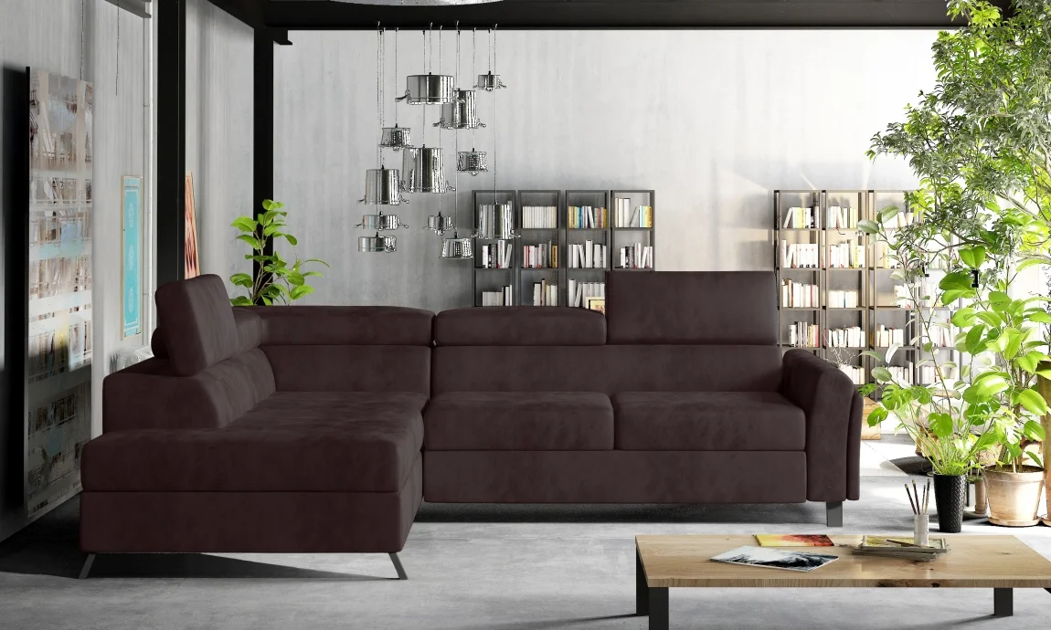 Rozkládací rohová sedačka s levým provedením je navržena pro pohodlné sezení i skutečný spánek. Potah Kronos 06 v tmavě hnědé barvě dodává eleganci a snadnou údržbu. Rozměry sedačky činí 265 × 65/95 × 197 cm, výška sedu 43 cm a hloubka 60 cm.