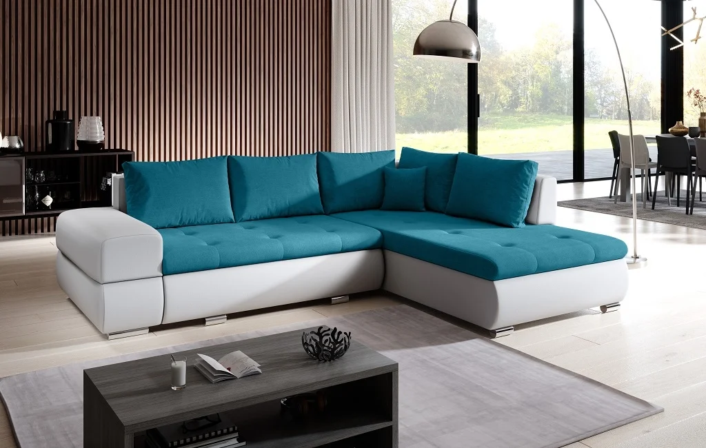 Rohová rozkládací sedačka LYKIE tyrkysová a bílá Sedací soupravy