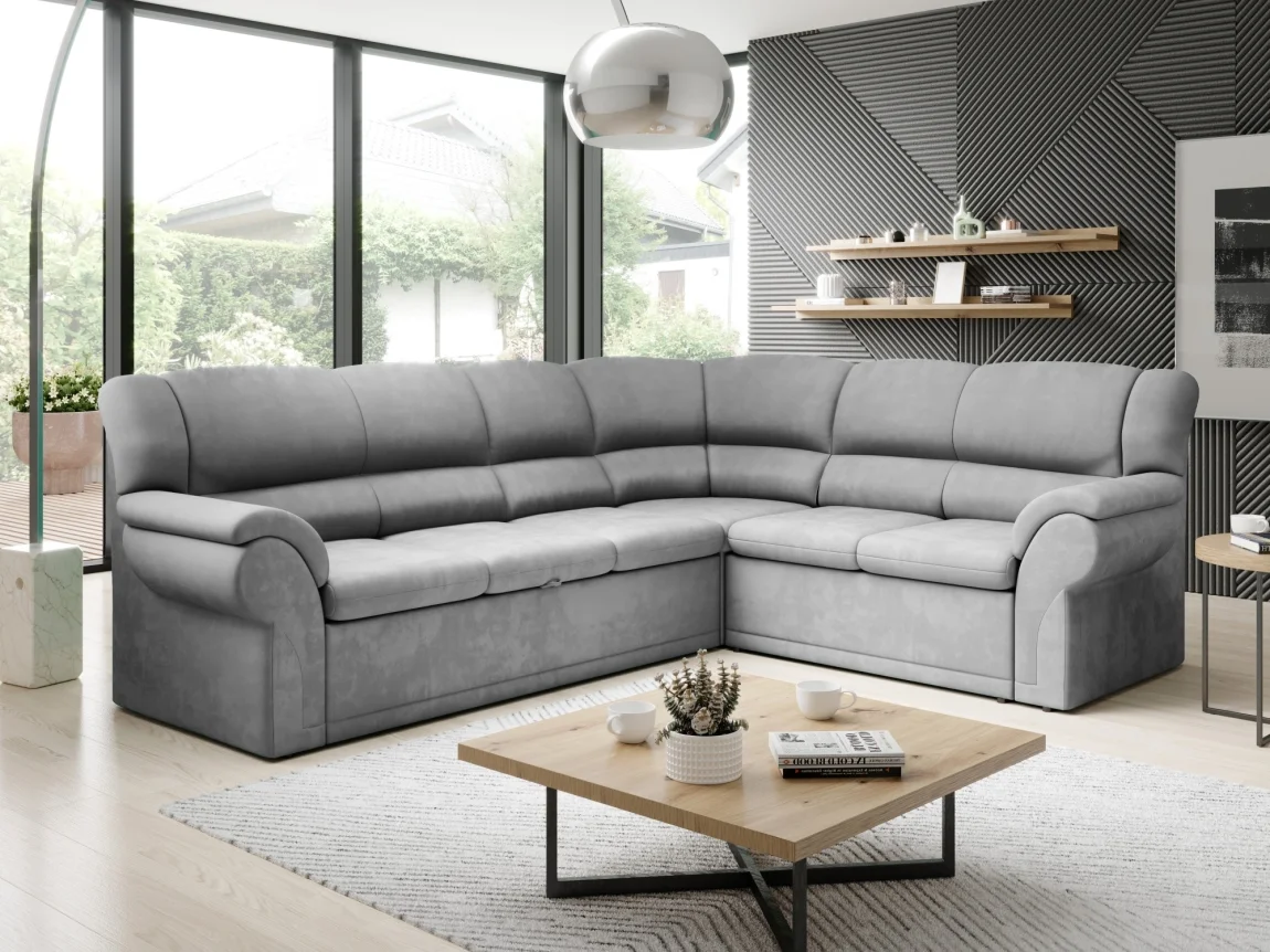 Elegantní rohová sedačka s rozkladem poskytuje pohodlí pro každodenní odpočinek i pro hosty. Provedení je pravé rohové provedení, které se hodí do specifických dispozic interiéru. Potahová látka Monolith 84 v jemně světle šedé barvě působí moderně a jednoduše se udržuje. Konstrukce kombinuje vlnité pružiny a polyuretanovou pěnu T30 pro pevné a pohodlné sezení. Nohy jsou plastové a dodávají sedačce stabilitu. Rozměry činí 270 x 220 x 93 cm (dxšxv); výška sedu 45 cm a hloubka 50 cm. Prostor pro spaní má rozměry 205 x 120 cm a úložný prostor 91 x 69 cm. Dodáváme v demontu pro pohodlnou přepravu. Obrázek ukazuje rozloženou sedačku i variantu s úložným prostorem; skutečná barva může být jiná, ale světle šedá verze skvěle zapadne do moderního interiéru.