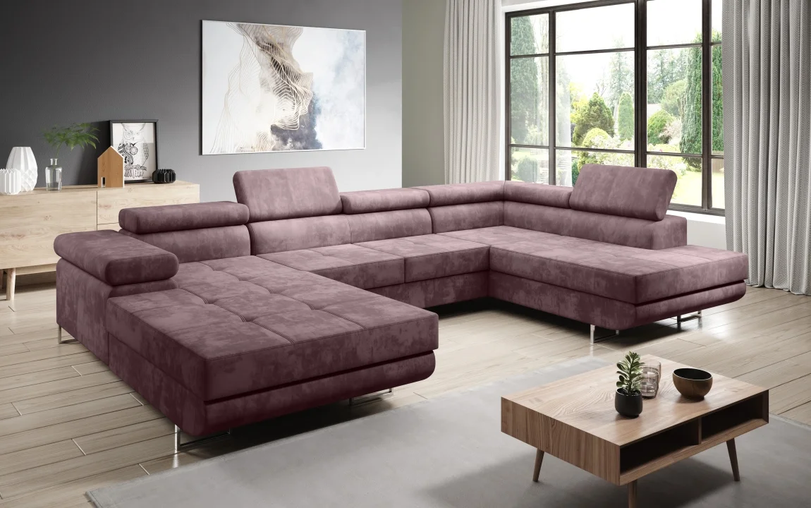 Rohová rozkládací sedačka s pravým uspořádáním rohu v elegantní starorůžové barvě. Potah Kronos 27 v odstínu starorůžová dodává jemný vzhled a komfort. Sedačka má pevná záda s výklopným záhlavníkem a 2 úložné prostory pro snadné uskladnění ložního prádla a doplňků.