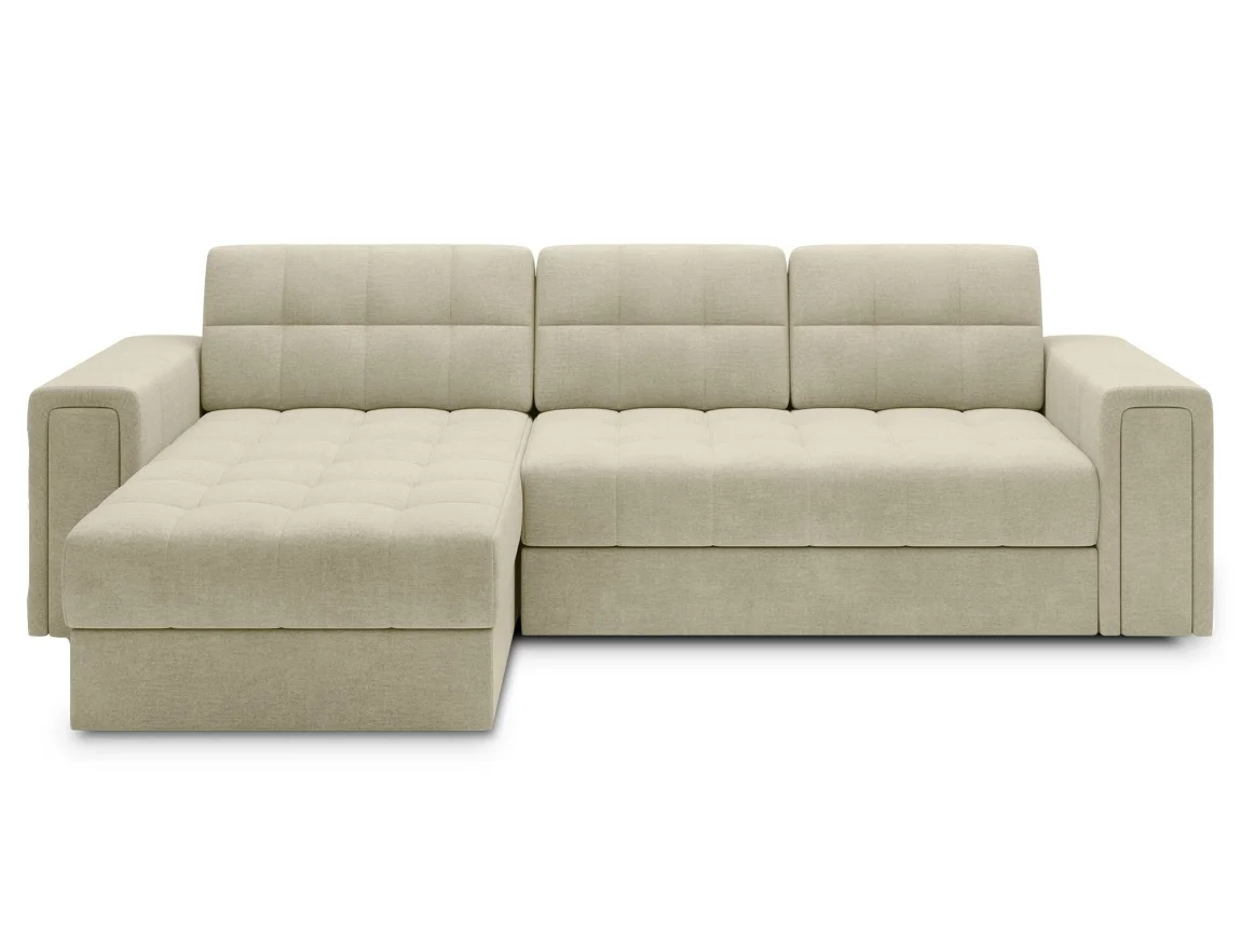Rohová rozkládací sedačka ve tvaru L je plně univerzální a roh lze jednoduše nastavit na pravou i levou stranu podle prostoru. Rozměry činí přibližně 260 cm na šířku, 82 cm na výšku a 150 cm do hloubky; po rozložení vzniká prostorné lůžko o rozměrech 123 x 212 cm. Potahová látka béžové barvy Monolith 04 je elegantní, odolná a snadná na údržbu, a navíc sedačku doplňuje praktický úložný prostor pro ložní prádlo. Rám tvořený masivním dřevem, vyplněný polyuretanovou pěnou T2540 a s vlnitými pružinami typu B, dodává robustnost a komfort sezení. Plochám spánku i posezení pak napomáhá mechanismus Delfin a celá výbava je ukotvena černými plastovými nožkami; samotná dodávka proběhne v demontu pro snazší transport.