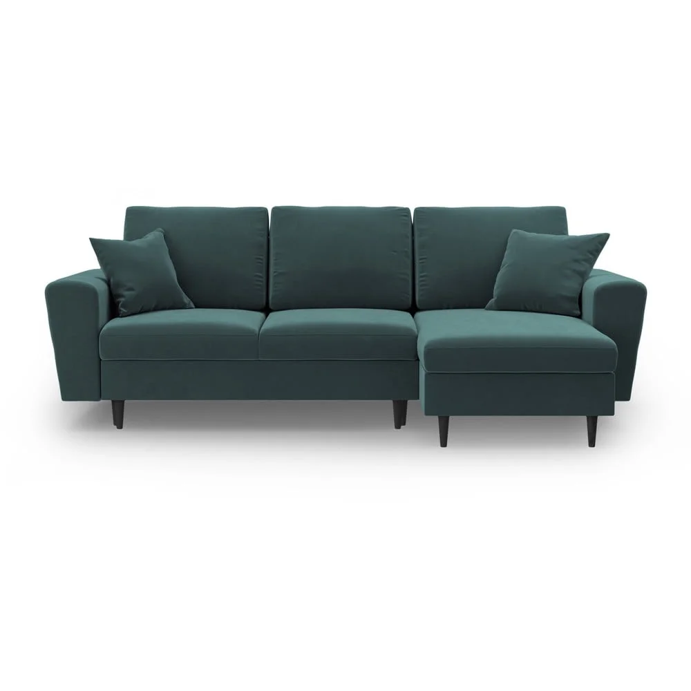 Objevte eleganci a komfort s rohovou sedací pohovkou Kyoto v syté petrolejové barvě, která se stane stylovým centrem vašeho obývacího prostoru. Díky své rozkládací funkcionalitě vám poskytne pohodlné místo na spaní pro hosty, zatímco integrovaný úložný prostor je ideální pro ukládání polštářů, přikrývek nebo dalších doplňků.
