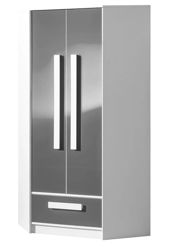 Rohová šatní skříň BLOURT bílošedý lesk Skříně a skřínky