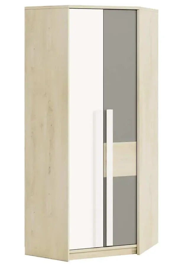 Parametry produktu Rohová šatní skříň REPENS – buk fjord, bílá a šedá