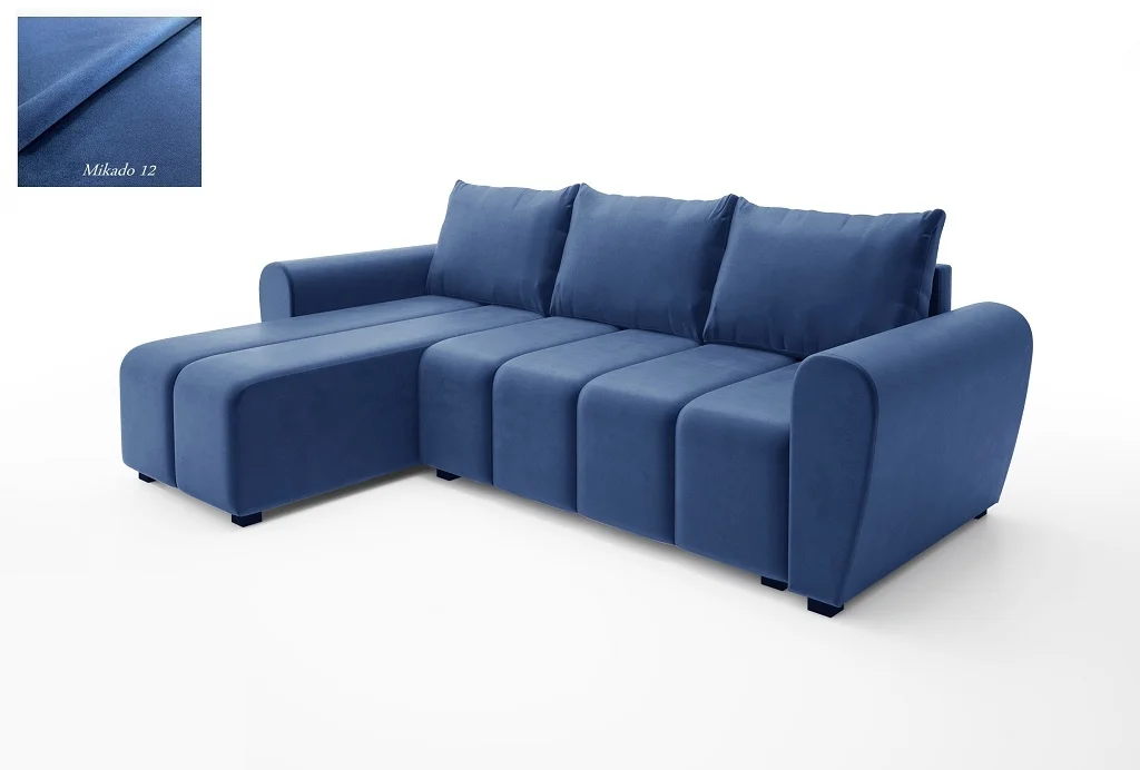 Univerzální rozkládací rohová sedačka AVALOR L se dá snadno montovat s rohem na levou i pravou stranu, což usnadňuje její umístění v různých dispozicích interiéru. Součástí jsou tři prostorné polštáře a praktický úložný prostor, které zvyšují komfort a zároveň rozšiřují úložný potenciál. Sedačka je celočalouněná, což zajišťuje pohodlí a vhodnost do různých prostor. Upozornění: ilustrační snímky zobrazují jinou barvu; skutečný odstín potahu Mikado 12 je modrý. Potahová látka: Mikado 12, modrá. Rozměry: šířka 246 cm, hloubka 82 cm, výška 145 cm. Ložná plocha: 200 x 130 cm. Výška sedu: 43 cm. Konstrukce zahrnuje vlnitou pružinu a vysoce elastickou pěnu pro dlouhodobé pohodlí. Nízké plastové nohy zajišťují stabilitu a usnadňují úklid pod sedačkou. Dodáváno v demontu, což usnadňuje přepravu a montáž doma.
