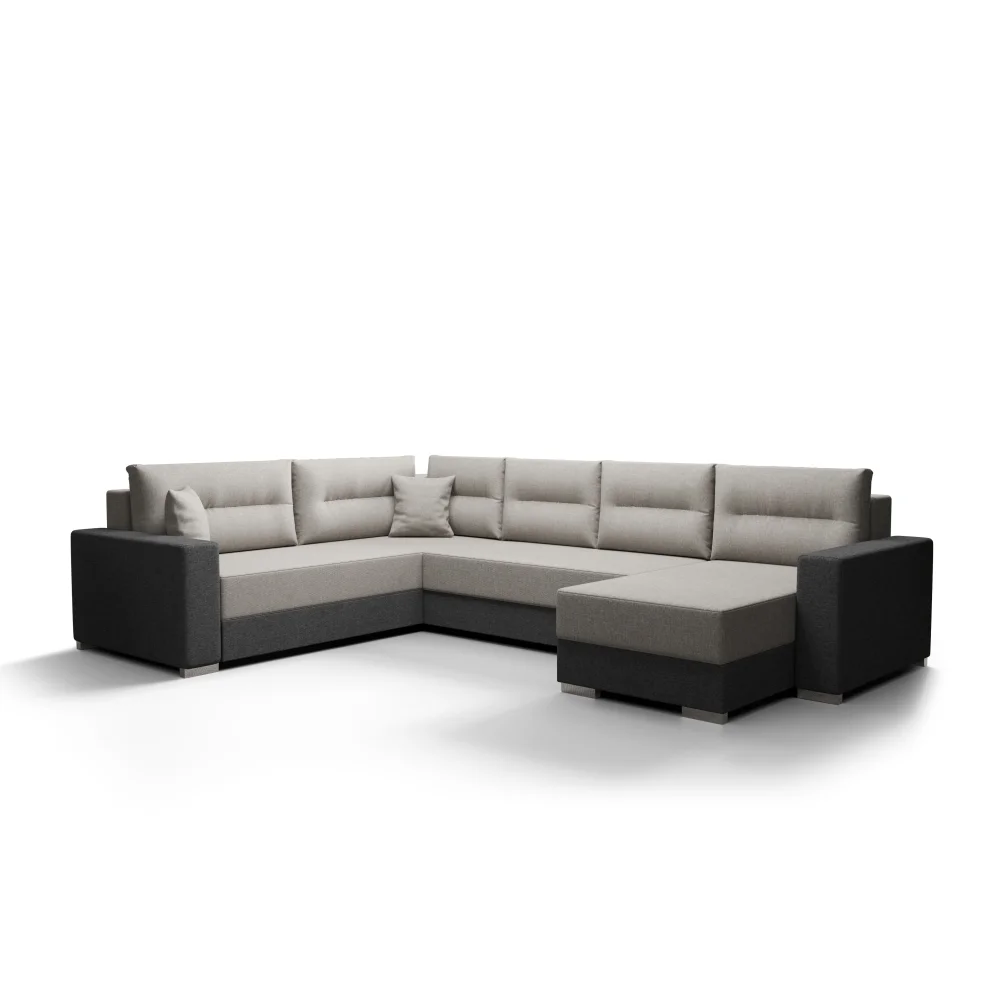 Rohová sedačka ve tvaru U je dodávána v univerzálním provedení a její uspořádání jednoduše vyhoví všem prostorům. K výběru jsou potahové látky Sawana 21 (světle šedá) a Sawana 05 (tmavě šedá).