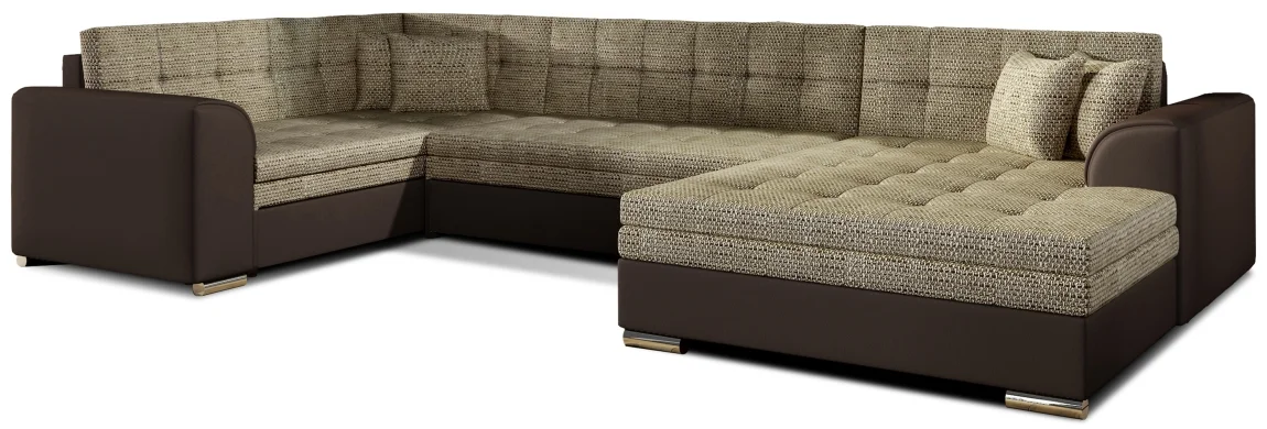 Rohová sedačka ESSLOR ve tvaru U kombinuje elegantní design s praktickým komfortem pro každodenní sezení i spaní. K dispozici jsou varianty potahu Berlin 03, hnědá látka s bílým a béžovým prošíváním, nebo Soft 66, tmavě hnědá ekokože; vyberte si vzhled podle svého vkusu a náročnosti na údržbu.