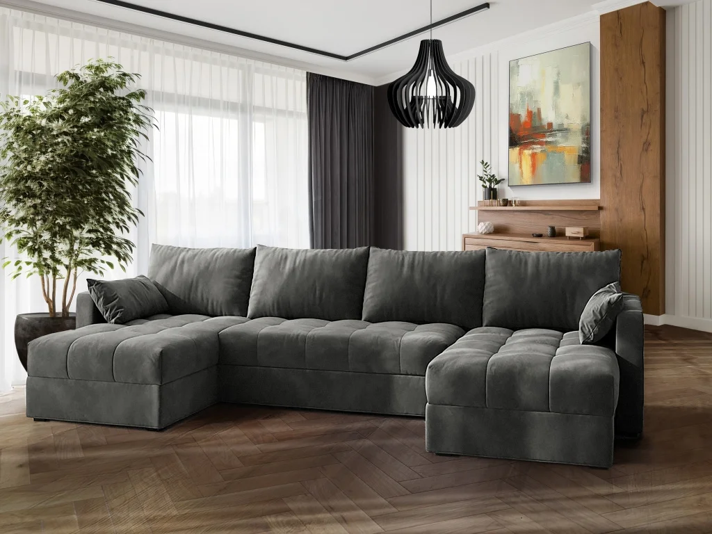 Rohová sedačka ve tvaru U je plně čalouněná, což umožňuje její umístění prakticky kdekoliv v místnosti a vytváří jednotný vzhled. Sestava HELVEN U je dodána s prošívaným sedákem a úložným prostorem.