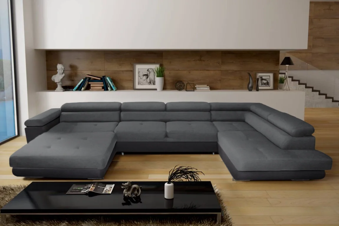 Praktická rohová sedačka ve tvaru U s pravou orientací poskytuje pohodlné sezení a prostorné spaní ve velkorysém provedení. Potahy jsou k dispozici ve dvou odstínech: světle šedá (Sawana 21) a tmavě šedá (Sawana 05).