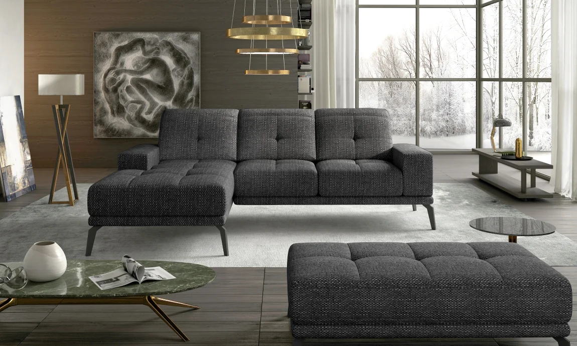 Rohová sedačka LITHOPS 02 v černé látce Berlin 02 s levým provedením je řešením pro stylový a pohodlný obývací prostor. Sedačka disponuje regulovatelnými opěrkami hlavy a nastavitelnými opěrkami zad, takže si můžete vždy vybrat ideální úhel sezení.