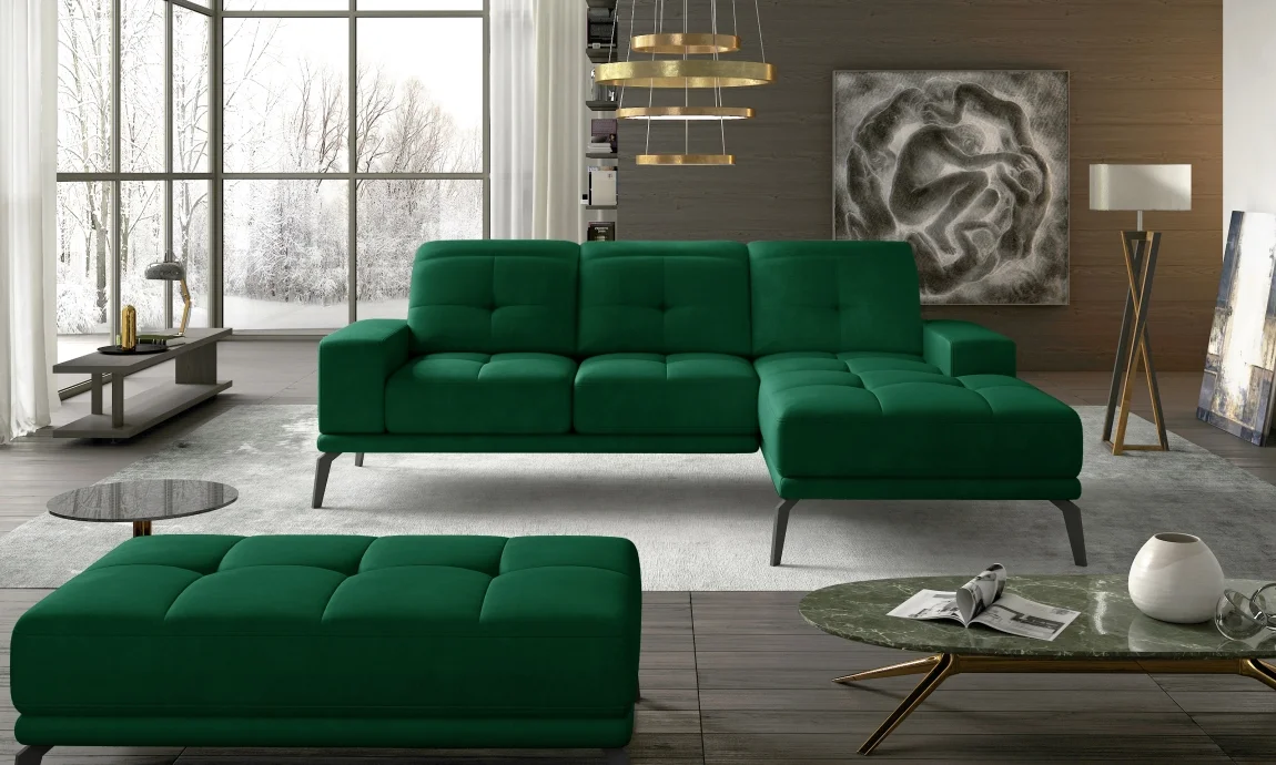 Rohová sedačka LITHOPS 14 – zelená Kronos 19, pravá Sedací soupravy