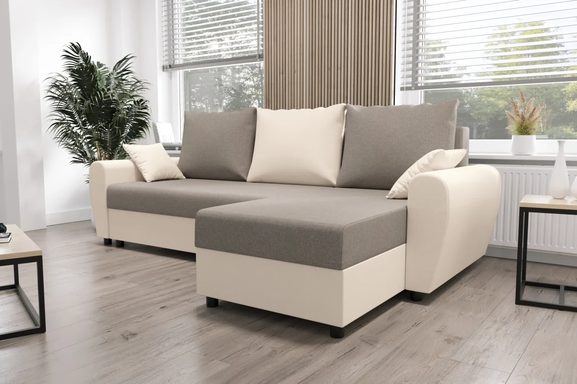 Rohová sedačka PERKSUM – světle šedá/krémová Sedací soupravy