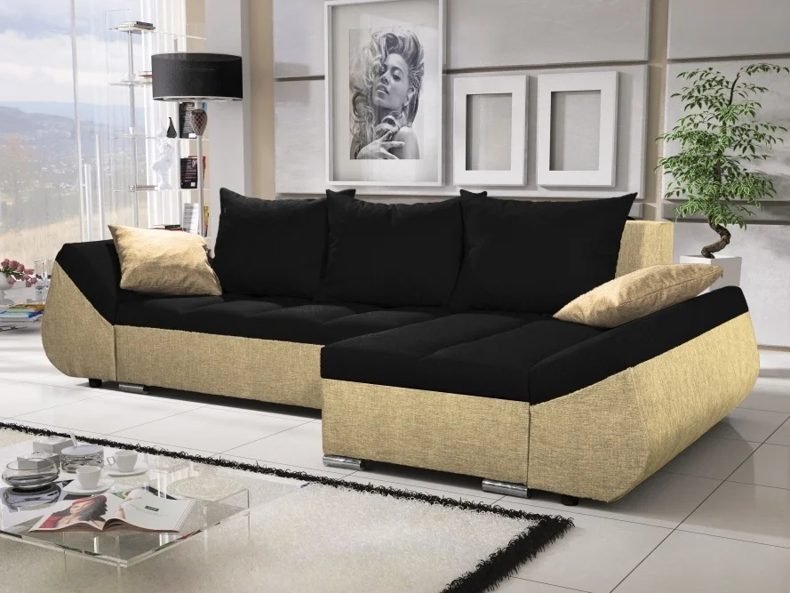 Rohová sedačka Ryker 5 spojuje styl s funkčností. Potahová látka je k dispozici ve dvou barevných variantách: černá Sawana 14 a krémová Sawana 01, které lze kombinovat pro atraktivní kontrast.