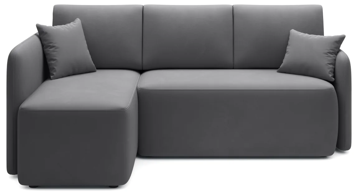 Rozkládací rohová sedačka s úložným prostorem v tmavě šedé látce SOLA 6. Pro provedení je levá boční strana rohu, takže se skvěle hodí do prostoru orientovaného vlevo. Posedení zajišťují vlnité pružiny typu B a HR pěna T3030, záda jsou potažena pěnou T2540/T2130, což přináší komfortní sezení i oporu v průběhu celého dne.