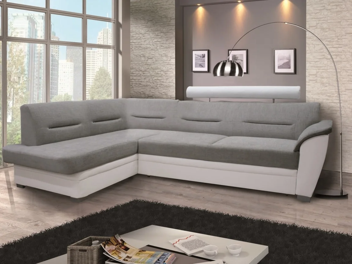 Rohová sedačka WILUNA, levá, se záhlavím – šedá látka / bílá ekokůže Sedací soupravy