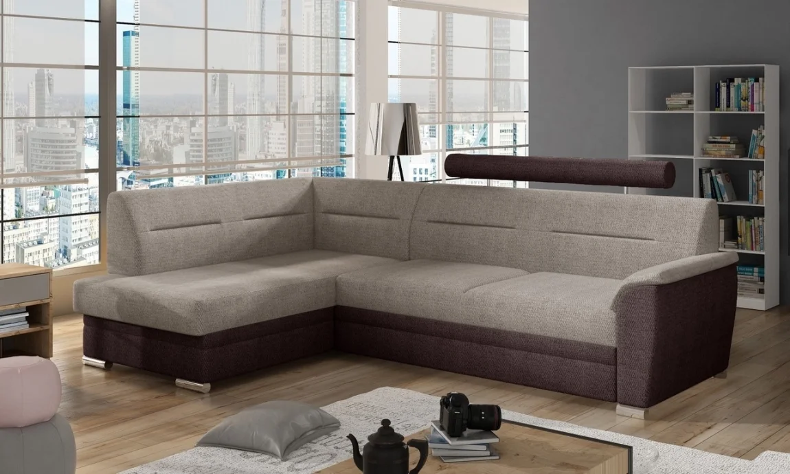 Rohová sedačka WILUNA se záhlavníkem – levá, béžová a tmavě hnědá Sedací soupravy