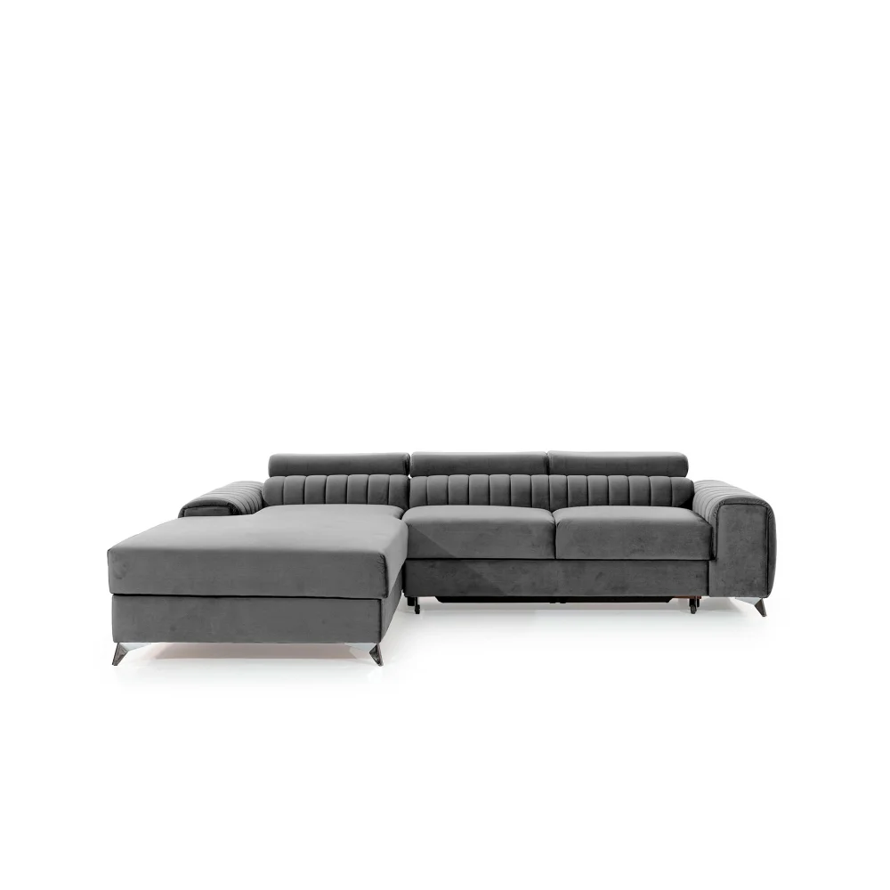 Rohová sedačka ZYP ve tvaru L s levým provedením a polohovatelnými záhlavníky nabízí komfortní posezení a zároveň prostor pro spaní. Je potažena světle šedou látkou Nube3, která kombinuje elegantní vzhled s nenáročnou údržbou.