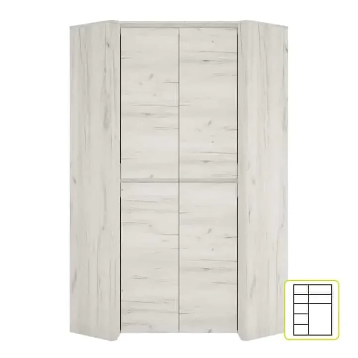 Rohová skříň ANGEL Typ 21 s dvoukřídlými dveřmi nabízí praktické police a patří do sektorové sestavy ANGEL, ideální volba do dětských a studentských pokojů. Je vyrobena z laminované dřevotřískové desky v bílé barevné variantě craft, která působí svěže a snadno se udržuje. Zboží dorazí demontované, s návodem pro rychlou montáž. Rohový tvar šetří místo a poskytuje efektivní úložný prostor pro všechny školní pomůcky a hračky.