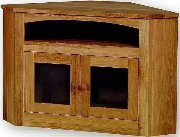 Parametry produktu Rohový dubový TV stolek se skleněnými dvířky a zásuvkou