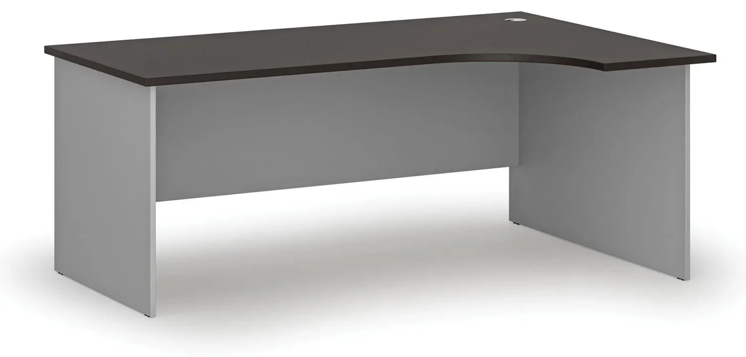 Pro váš efektivní pracovní prostor představujeme rohový kancelářský stůl PRIMO v moderním designu s rozměry 180x120 cm, určený pro pravou stranu. Je vyroben z odolné laminované dřevotřísky o síle 25 mm, která zaručuje dlouhou životnost a snadnou údržbu, a doplněn o pevné podnože z lamina o síle 18 mm. Stůl je vybaven plastovými kluzáky, které chrání podlahu a umožňují stabilitu. Výška pracovní plochy je 740 mm, což je ideální pro pohodlné sezení, a praktické kabelové průchodky usnadňují organizaci kabeláže. Tento kancelářský stůl je perfektní volbou pro moderní pracovní prostředí, které kombinuje funkčnost s elegantním vzhledem. Navíc jeho design v šedé a wenge barvě snadno sladíte s dalšími kancelářskými prvky.