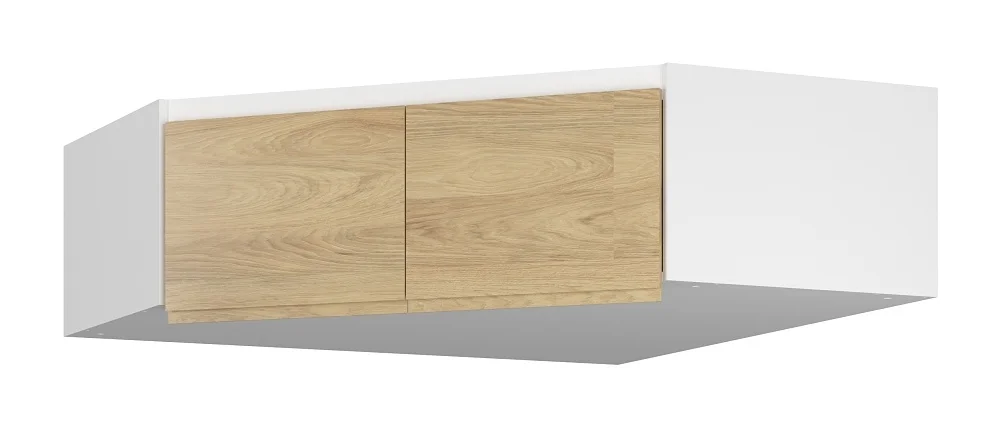 Rohový nástavec ZAIRE 2D pro skříňový systém v provedení alpská bílá a dub hikora efektivně rozšíří úložný prostor v rohu místnosti. Vyrobeno z lamino/MDF pro pevnou konstrukci a snadnou údržbu.