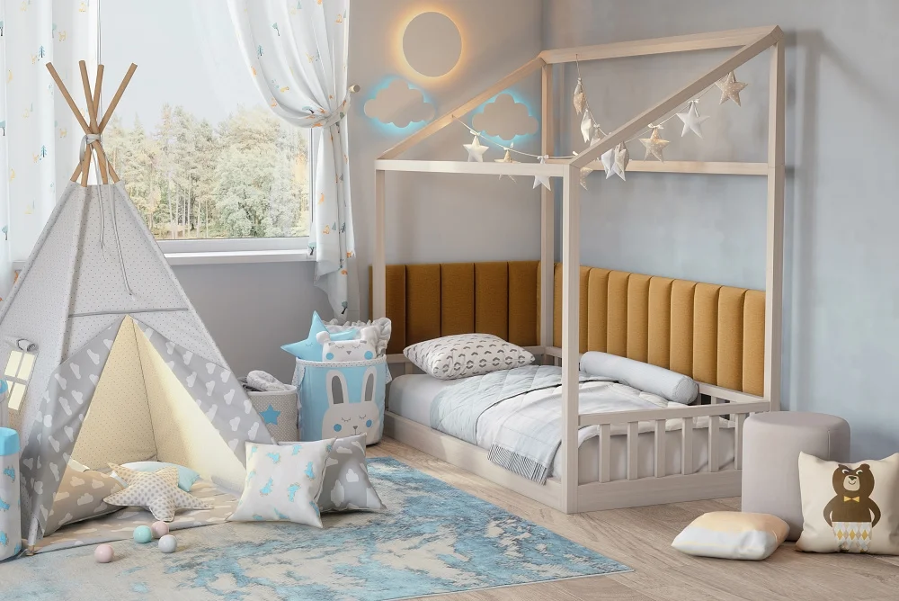 Panel lze na zeď upevnit buď vysocepevnostním lepidlem (pozor na to, aby lepidlo nepřesáhlo na čalounění), nebo prakticky pomocí suchého zipu — jedna část se přilepí na zeď a druhá na panel. Suchý zip usnadňuje demontáž a čištění prachu. snadná demontáž a údržba díky tomuto řešení patří mezi hlavní výhody panelu.