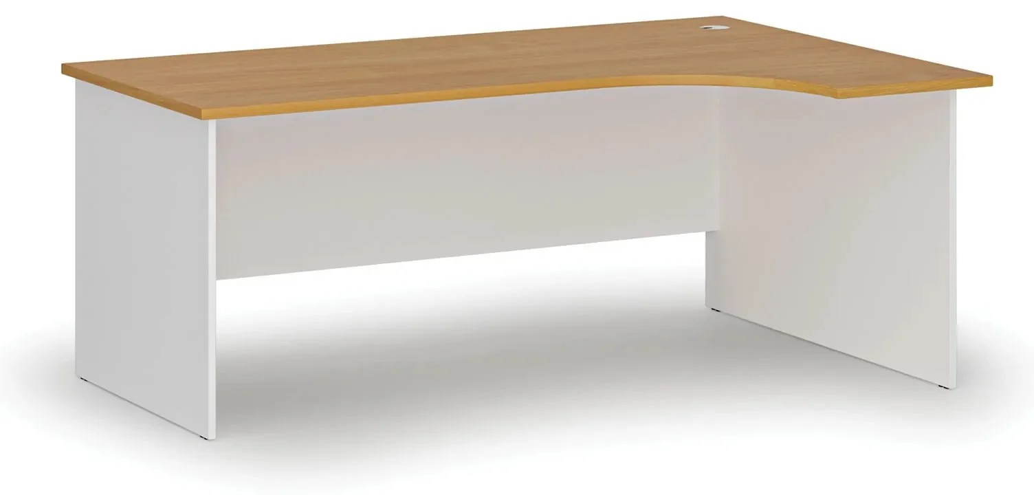 Moderní rohový kancelářský stůl PRIMO WHITE s rozměry 180x120 cm je ideální volbou pro efektivní pracovní prostředí. Vyrobený z pevné laminované dřevotřísky o tloušťce 25 mm s odolnou ABS hranou, zajišťuje dlouhou životnost a snadnou údržbu.