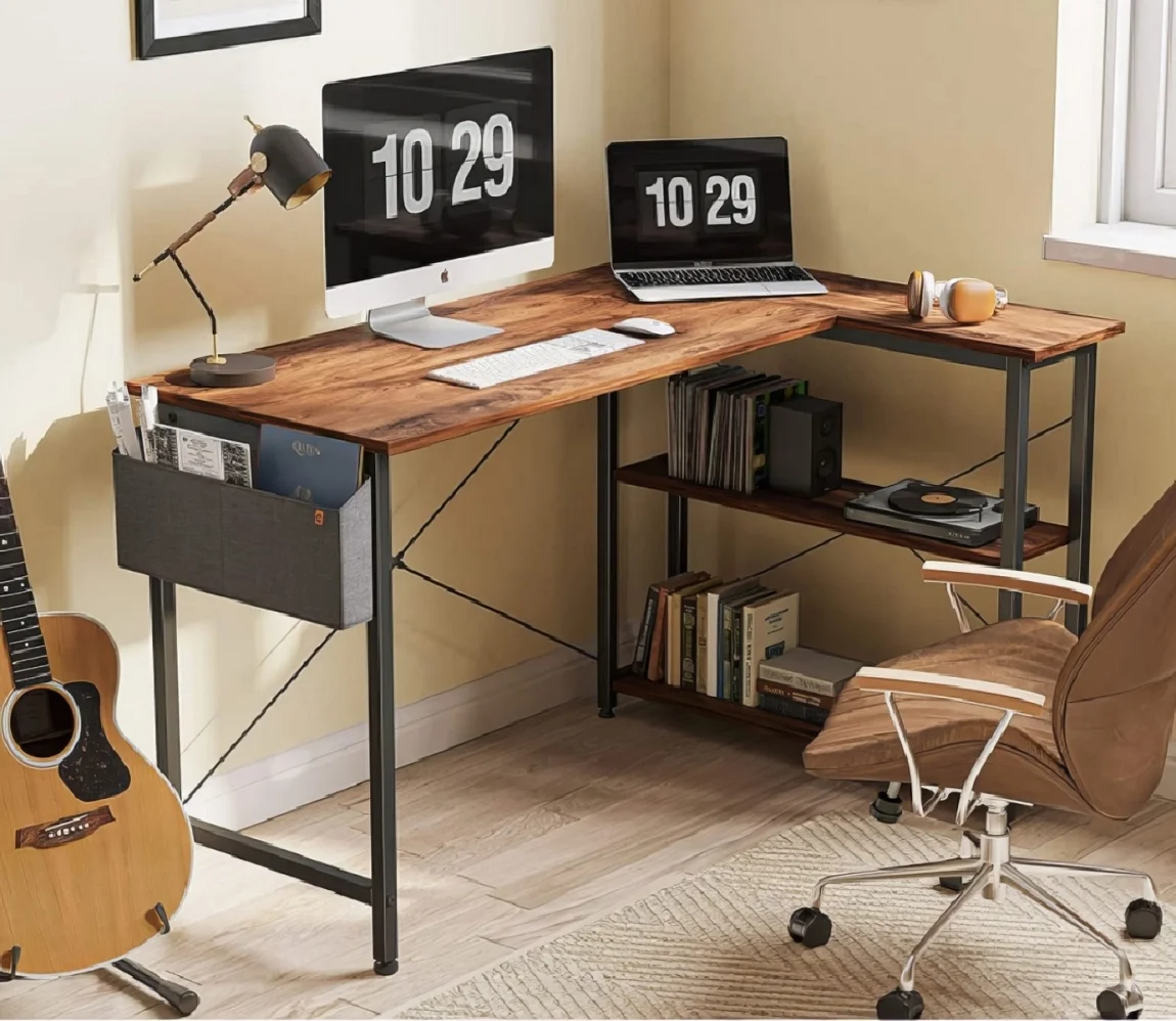 Rohový psací stůl vhodný pro pracovnu, kancelář i studentský pokoj nabízí efektivní organizaci díky robustnímu úložnému systému. Součástí je praktický regál, kapsa a police pro pohodlné uložení dokumentů, pomůcek a drobných věcí. Materiál tvoří kombinace MDF a kovu a vyniká pevností i dlouhou životností. Barva provedení je dub artisan/černá, která se hodí do moderních i tradičních interiérů. Rozměry (š x v x h): 102 x 72 x 70 cm. Dodáváno v demontu, montáž je jednoduchá.