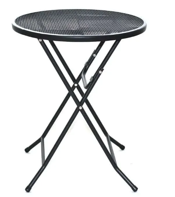 Rojaplast ZWMT-60F je praktický kovový stůl, který se snadno skládá pro pohodlné uskladnění. Jeho drátěná horní deska dodává lehký, vzdušný vzhled a zároveň je pevná a odolná. Stůl se hodí k dalšímu kovovému nábytku a díky černé povrchové úpravě vypadá elegantně na každé terase či zahradě. Údržba je nenáročná – stačí omýt vodou a setřít. Rozměry: výška 72 cm, Ø60 cm (průměr desky), délka 90 cm; hmotnost 13 kg a nosnost 50 kg. Balení probíhá v kartonové krabici.