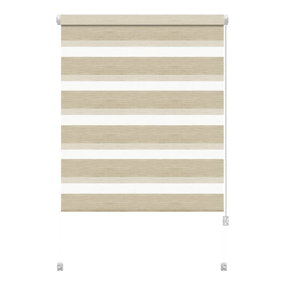 Elegantní roleta den a noc Zebra Natur od značky Gardinia nabízí moderní design s praktickými funkcemi. Vyrobena je z kvalitního 100% polyesteru, který umožňuje plynule nastavovat průnik světla do vašeho interiéru. Díky bočnímu řetízkovému ovládání, jež lze umístit na levou nebo pravou stranu, si snadno přizpůsobíte osvětlení podle svých potřeb.