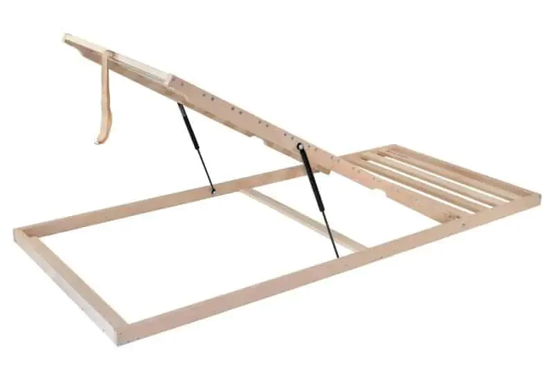 Rošt z masivního buku se vyznačuje vysokou odolností a stabilitou díky pevným spojovacím materiálům. Díky výklopnému provedení s pístem získáte snadný přístup do úložného prostoru a textilní uchytky usnadní manipulaci.