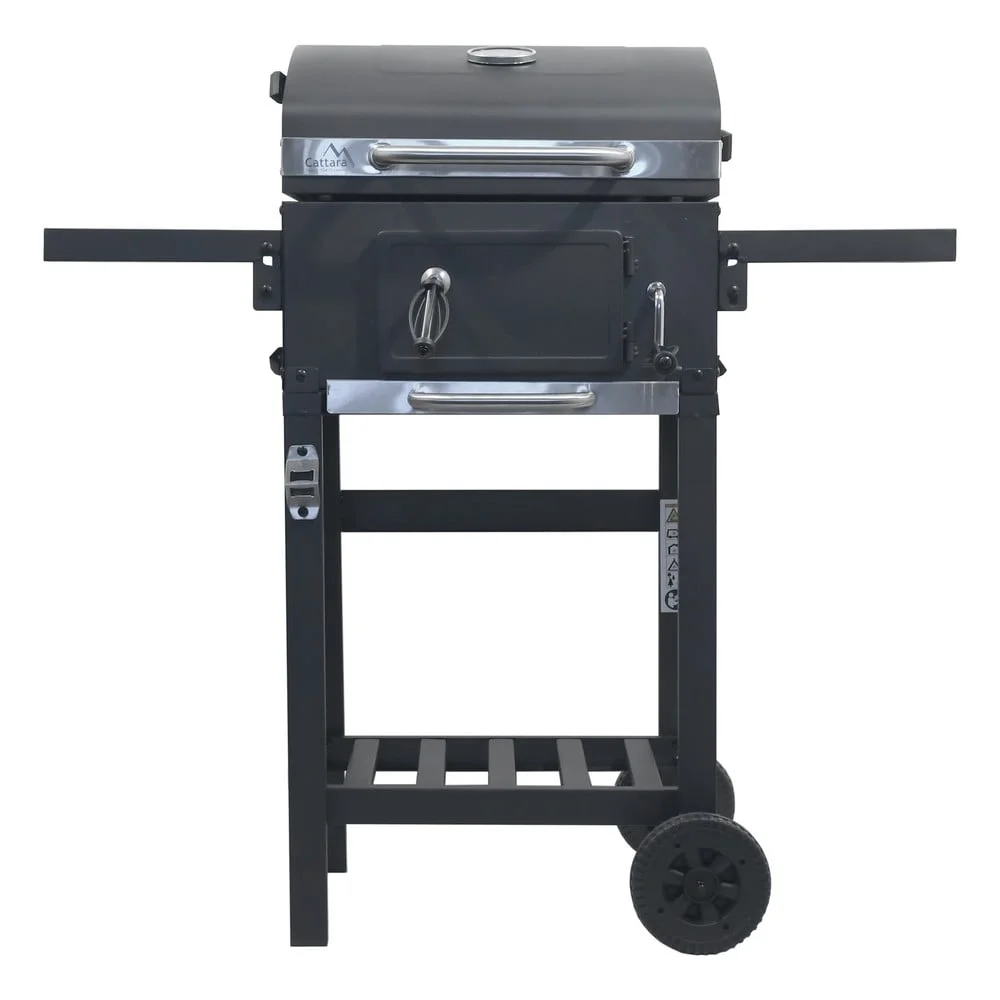 Objevte špičkový gril na dřevěné uhlí značky Cattara, navržený pro náročné milovníky grilování. Jeho pevná konstrukce z kvalitní oceli s odolným povrchem zajišťuje dlouhou životnost a stabilitu při použití. Díky praktickým kolečkům je jeho přesun jednoduchý a rychlý, zatímco spodní rám slouží jako stabilní základ a úložný prostor na doplňky.