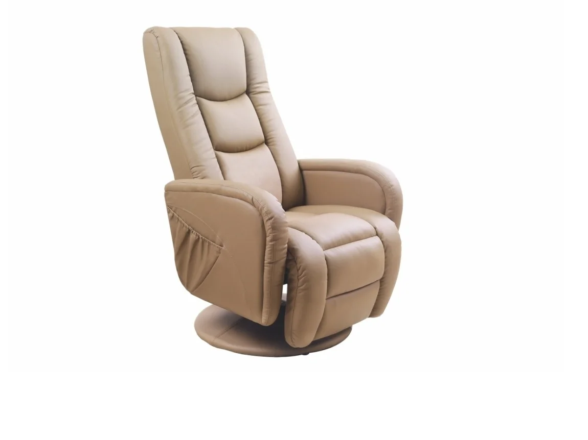 Elegantní komfort pro každodenní odpočinek nabízí relaxační rozkládací křeslo PULZAR v béžové barvě. Povrch tvoří odolná kombinace ekokůže a PVC, která je snadná na údržbu a příjemná na dotek.