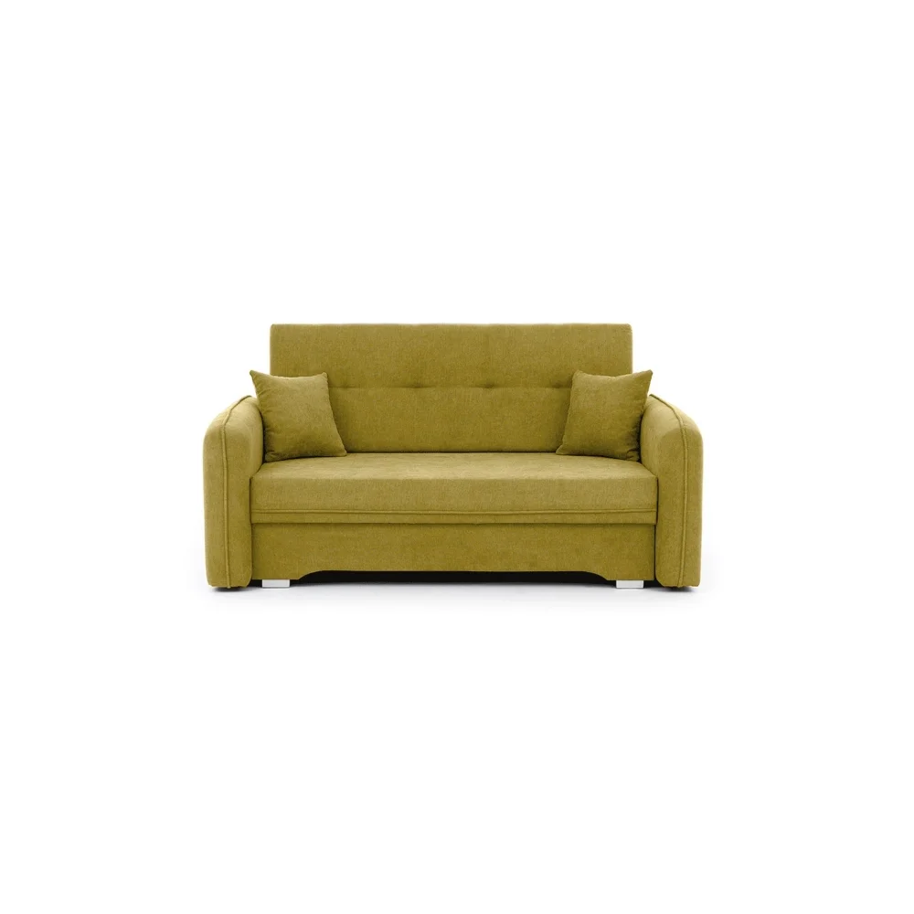 Toto rozkládací pohovka v atraktivní žluté látce Poco 50 zaujme svěží atmosférou a snadno se kombinuje s dalším nábytkem. Rozměry 135 × 75 × 105 cm poskytují pohodlné sezení při zachování rozumného prostoru.