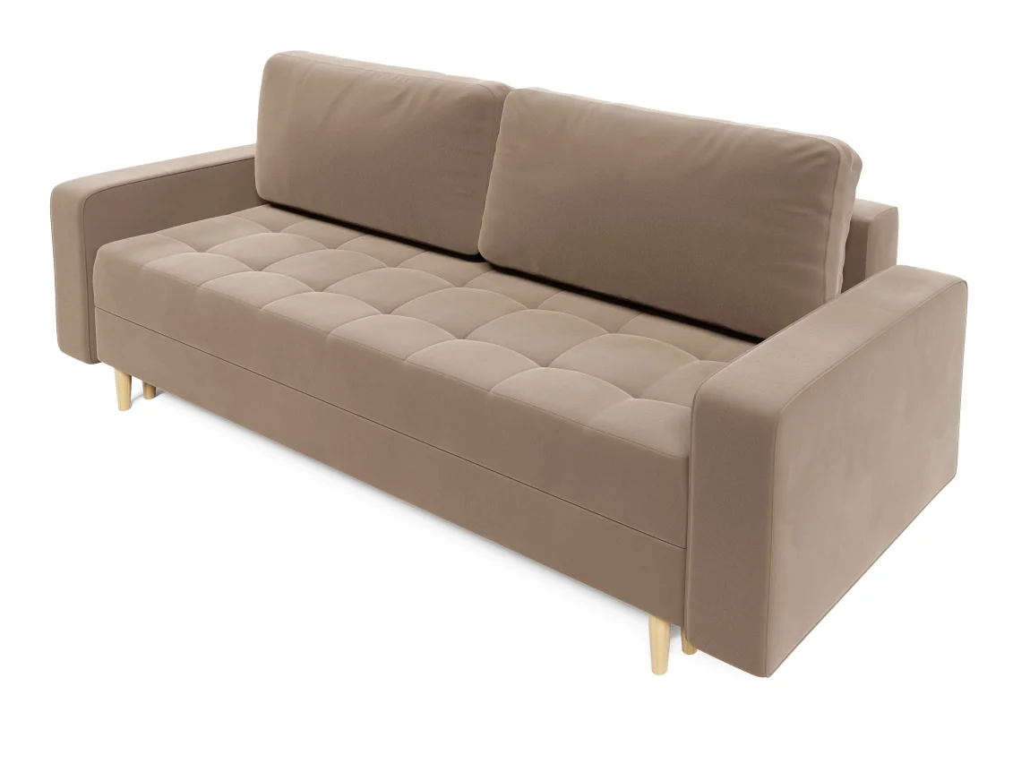 Rozkládací pohovka GREYIA v provedení světle hnědé barvy se hodí do každého obývacího prostoru. Potahová látka: plyš Itaka 48 zajišťuje příjemný dotyk a komfort při používání. Barva pohovky odpovídá vzorku látky na obrázku, což usnadní sladění s vaším interiérem.
