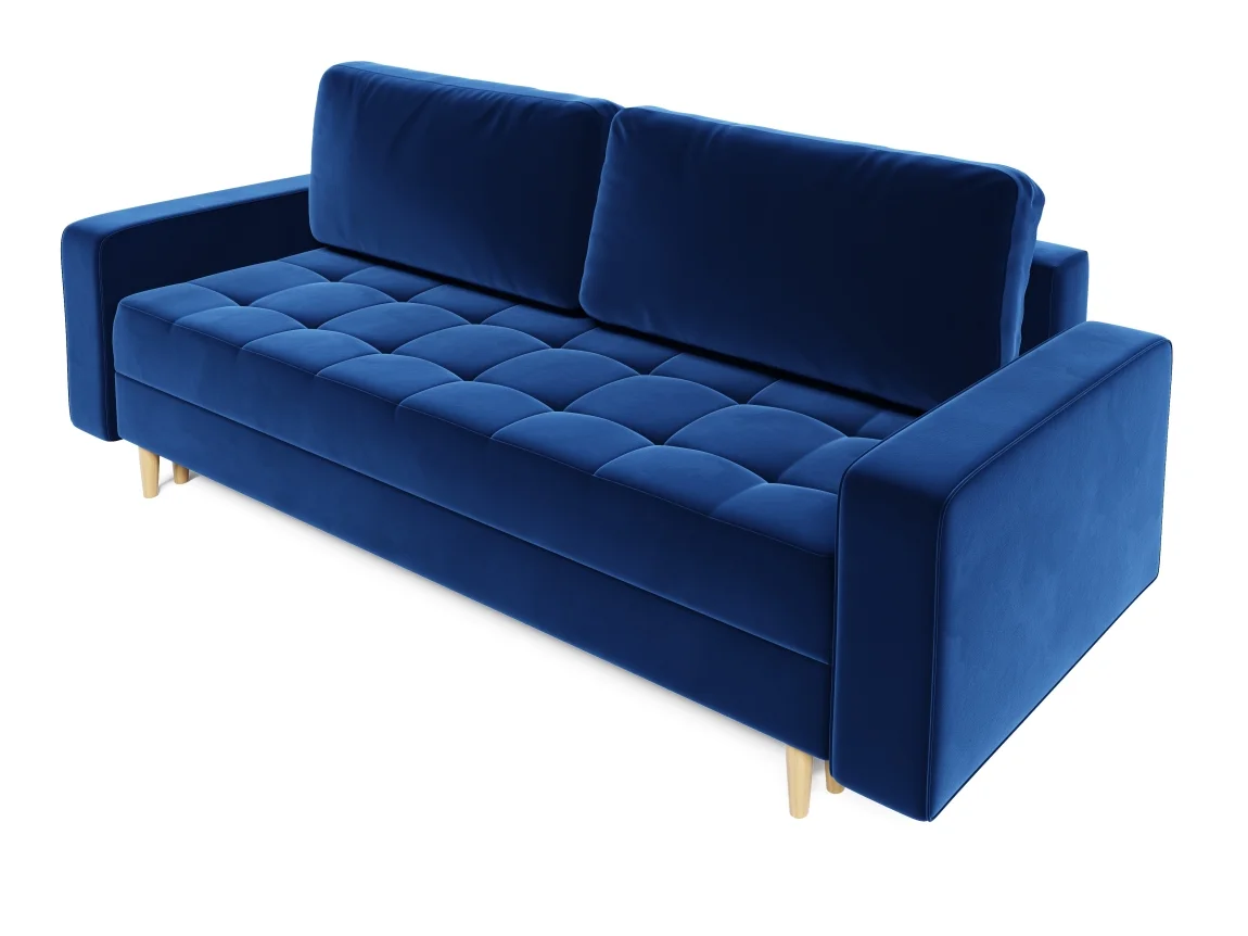 Rozkládací pohovka GREYIA v tmavě modré barvě spojuje styl s praktičností pro váš obývací pokoj. Potahová látka je hebká na dotek a snadno se udržuje díky plyšové látce Itaka 11. Rozměry samotné pohovky (d x v x š): 238 x 91 x 90 cm; výška sedu 46 cm; hloubka sedu s polštáři 57 cm a bez polštářů 75 cm. Nohy pohovky jsou vysoké 13 cm a šířka bočnic činí 23 cm. Pro pohodlné spaní nabízí prostornou plochu 200 x 136 cm. Snadný a rychlý rozkládací systém umožňuje proměnit pohovku na postel během chvilky. Záruka 24 měsíců.