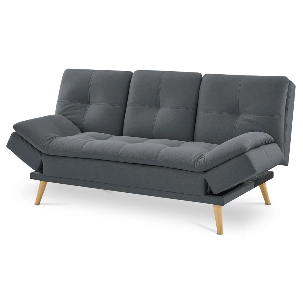 Propojuje praktickou rozkládací funkci s čistým skandinávským designem, který oživí každý moderní interiér. Čalounění v tmavě šedé látce působí elegantně a nohy z masivního bukového dřeva dodávají interiéru přírodní akcent a stabilitu.