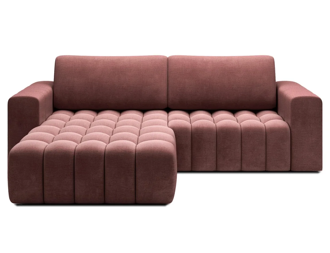 Praktická a pohodlná rozkládací rohová sedačka s levou orientací je ideální pro rodinné chvíle i pro hosty. Potahová látka Monolith 63 v odstínu růžová působí jemně a snadno se udržuje.