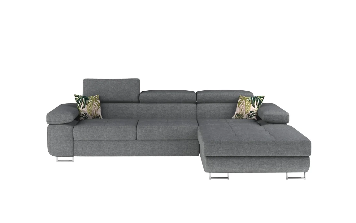 Rozkládací rohová sedačka DARPOL 11 v pravém provedení nabízí flexibilní uspořádání pro každý obývací prostor. Zadní část je potažena látkou, takže ji lze postavit i volně v místnosti bez nutnosti těsnit ke zdi.
