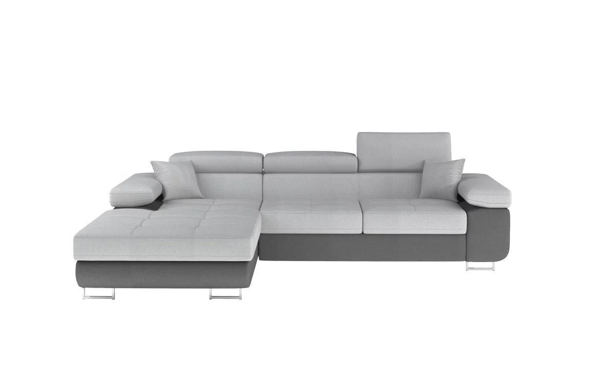 Rozkládací rohová sedačka DARPOL 27 v provedení levé strany je ideální volba pro komfortní sezení i pohodlné spaní. Zadní část je potažená látkou, což umožňuje její umístění i volně v prostoru bez nutnosti opřít ji o zeď.