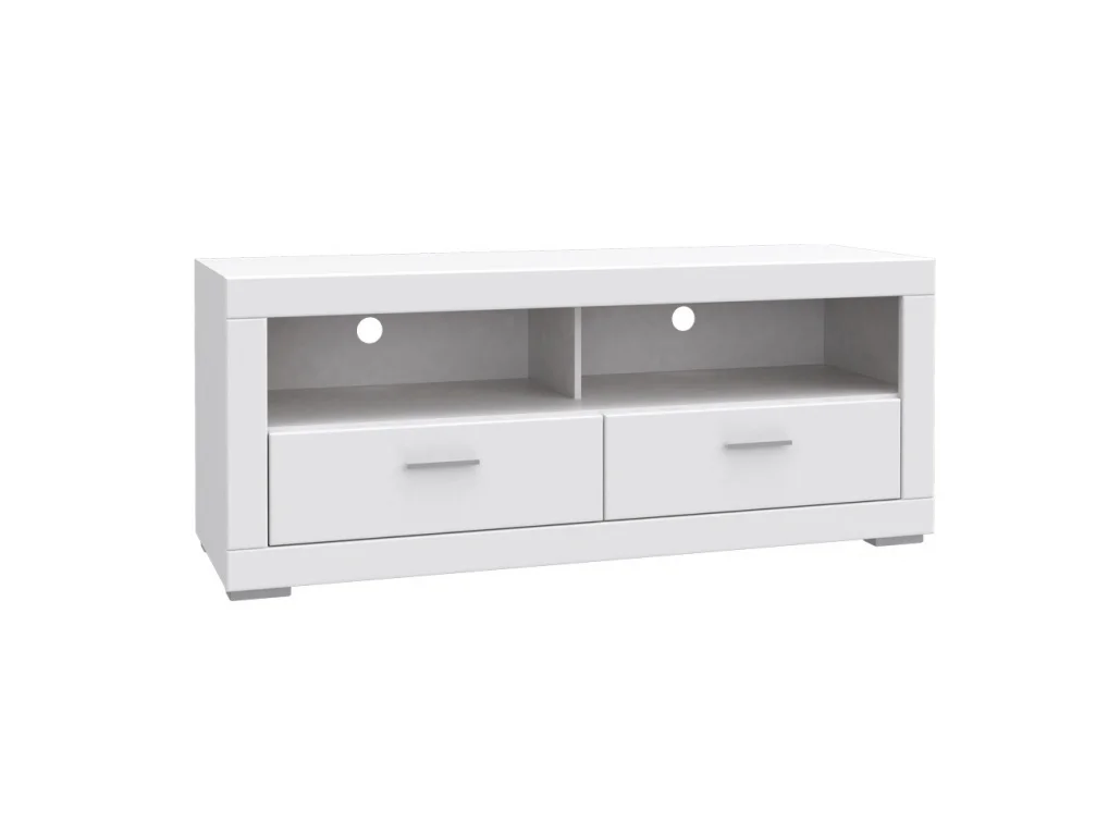 Elegantní RTV stolek REMPART v bílé barvě nabízí praktické řešení pro obývací pokoj s televizí. dvě zásuvky poskytují dostatek místa pro ovladače, dokumenty a drobnosti. Rozměry 156 cm na šířku, 64 cm na výšku a 52 cm hloubky zajišťují pohodlný prostor pro televizi i další elektroniku.
