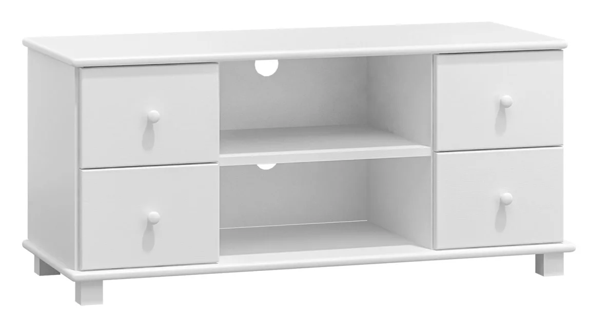 RTV stolek TAMONAD 3 – borovice masiv, šířka 118 cm, bílé moření Televizní stolky