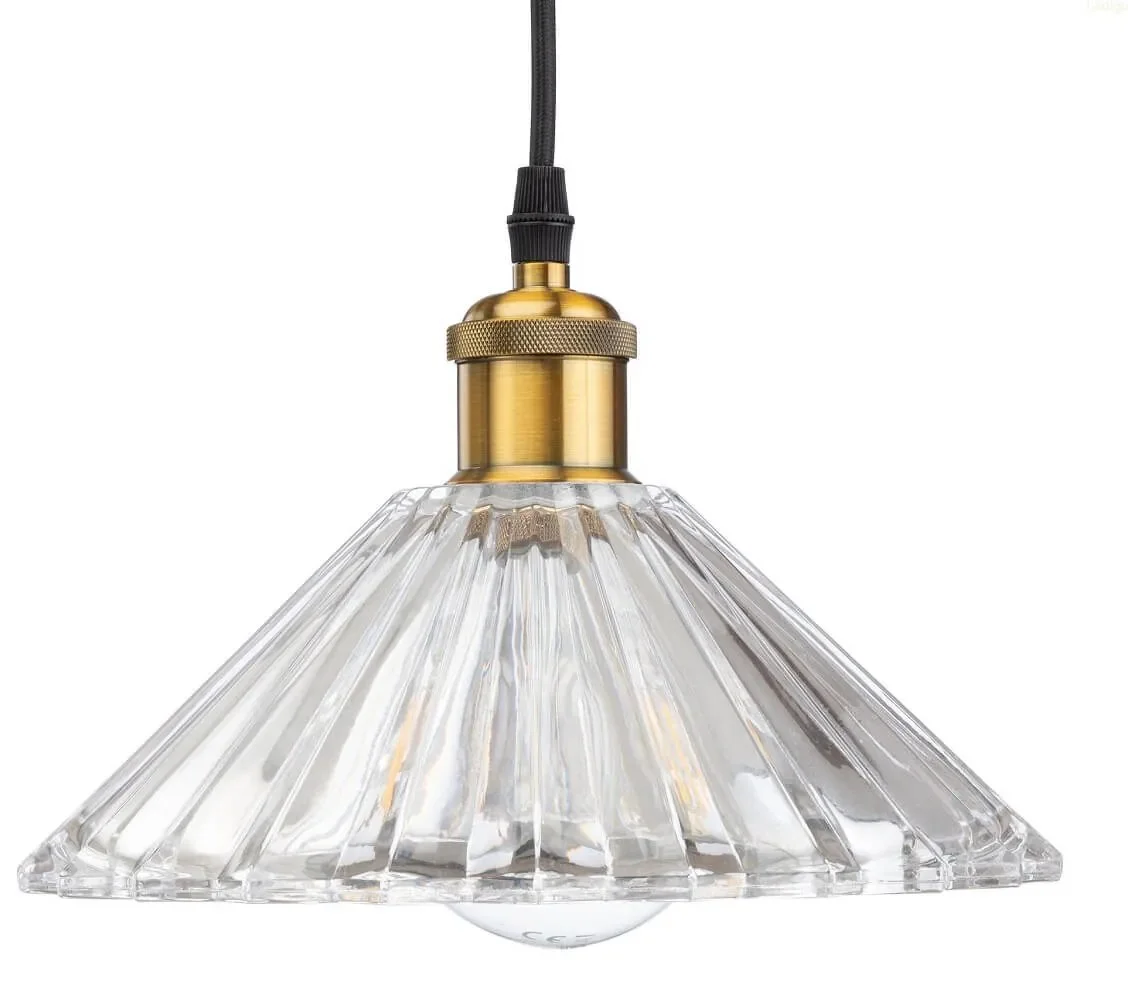 - Stará mosaz, čiré sklo, černý látkový kabel