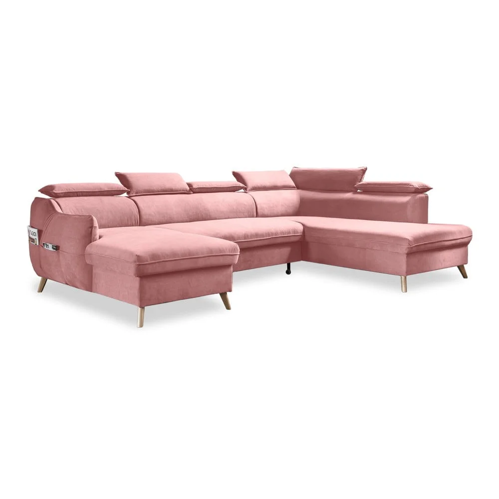 Růžová sametová rozkládací rohová pohovka Sweet Harmony Rohové sedací soupravy