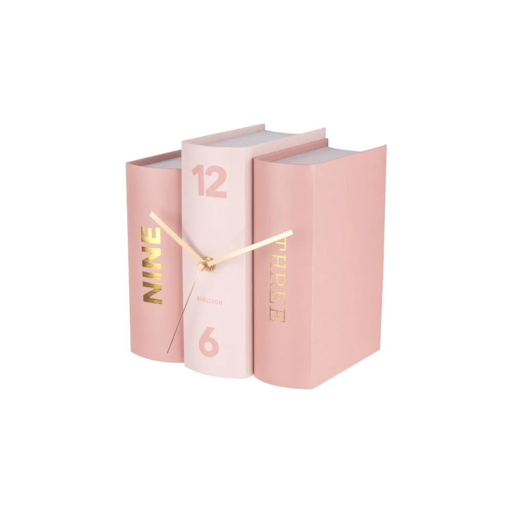Růžové stolní hodiny Karlsson ve tvaru knih Hodiny