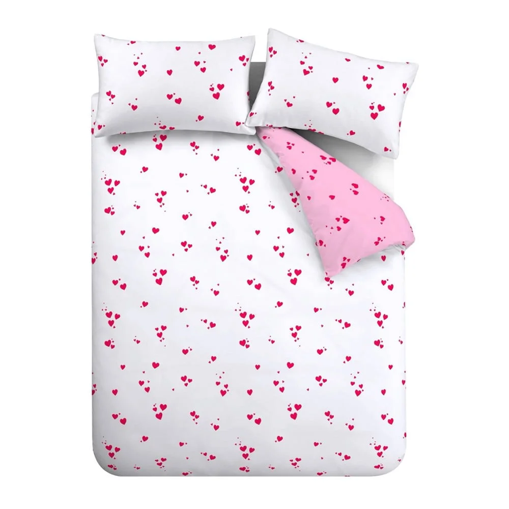 Růžovo-bílé krepové povlečení 200x200 cm srdíčka Povlečení