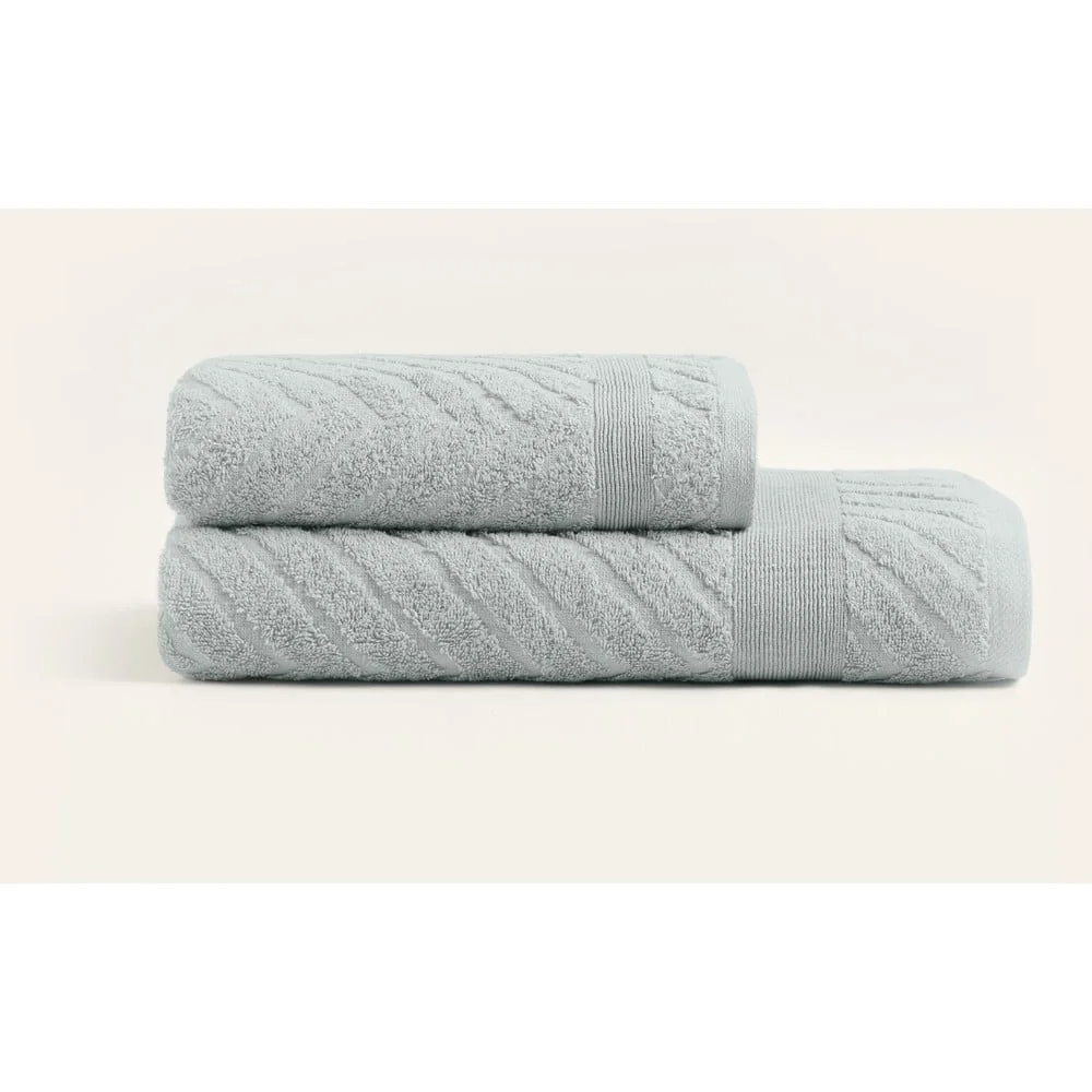 Sada 2 světle šedých bavlněných froté ručníků a osušek Osušky