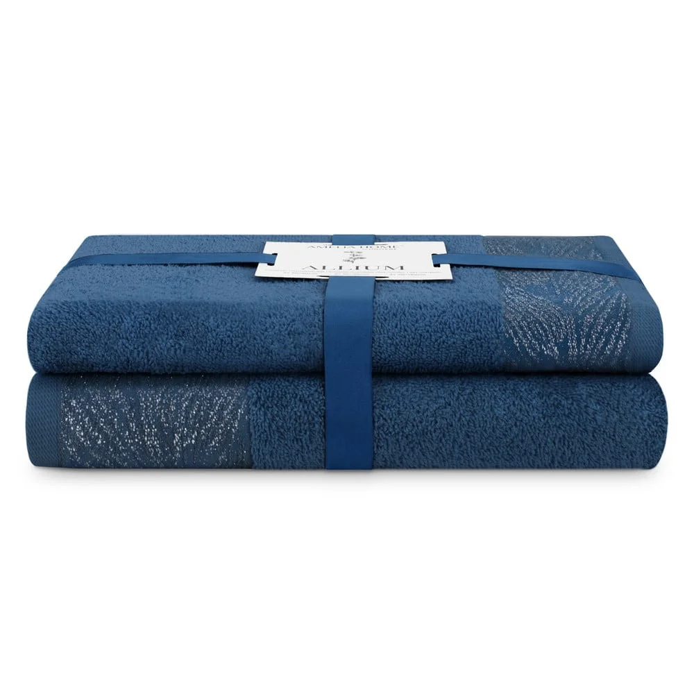 Sada 2 tmavě modrých bavlněných ručníků a osušek Allium Osušky