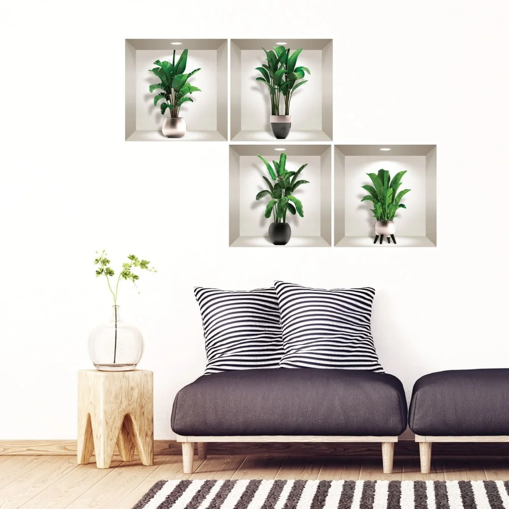 Sada 4 3D samolepek s exotickými palmovými listy Samolepky na stěnu